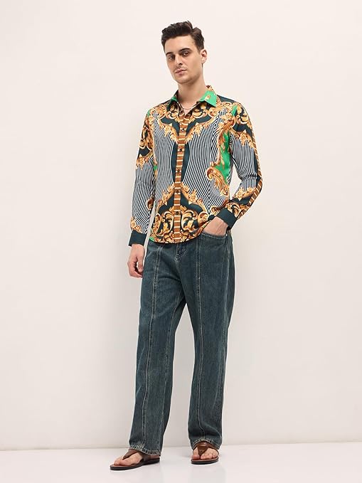 THE BEAR HOUSE Men’s Printed Slim Fit Casual Shirt